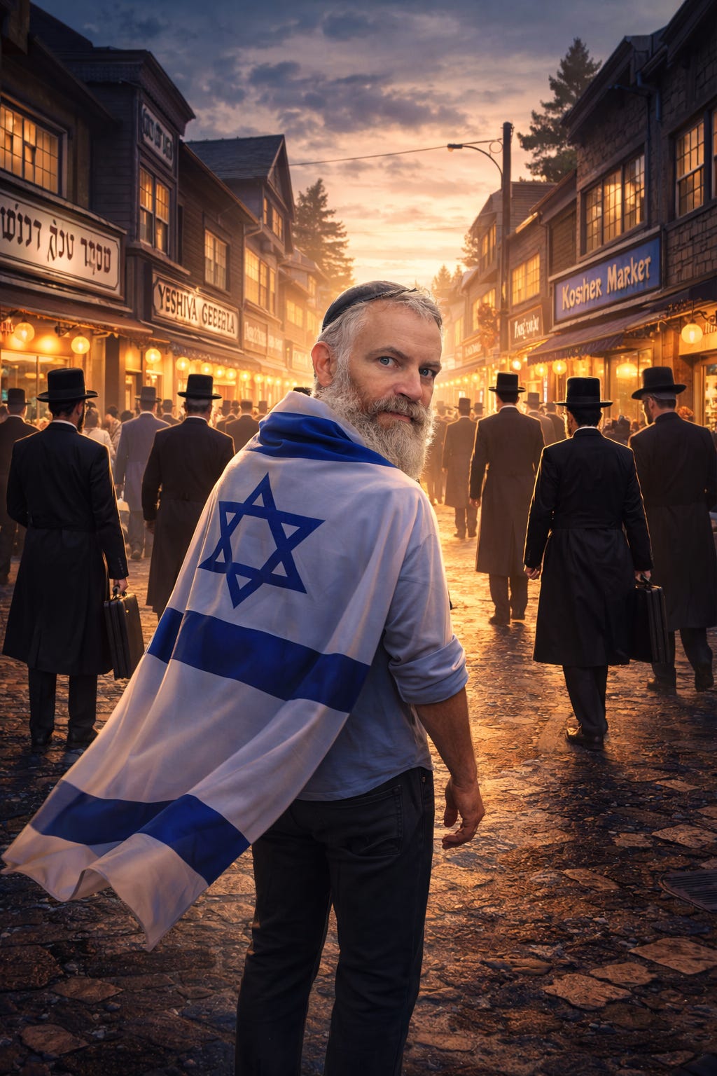 The signs are familiar. Hebrew everywhere. Yeshivas. Shuls. Kosher supermarkets. The language, the clothing, the rhythms of daily life—all recognizable. On the surface, it looks like Judaism.